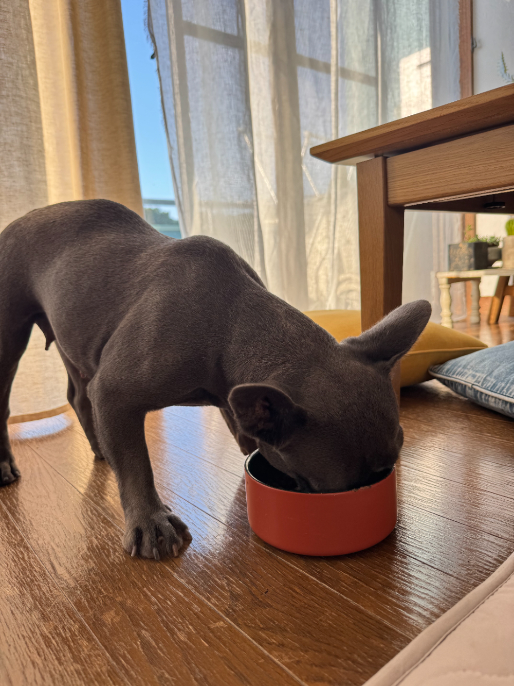・食事はドックフードを1日2回、好き嫌いはありませんが食べなれないものだと下痢をします。