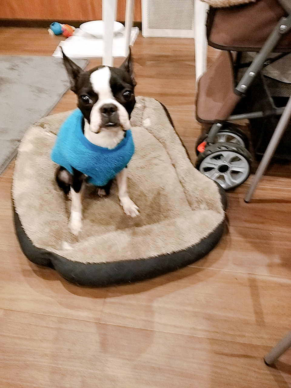 ●おうちでは、コタツ下の3つのベットのうち、1番身体が小さいのに1番大きいベットに寝て過ごしています(笑)先住犬達が小さいベットを使っています(笑)